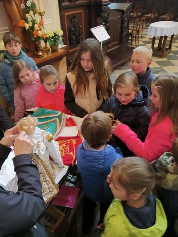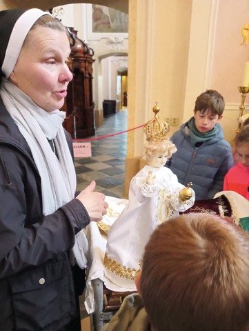 Sestřička Vojtěcha jim v bazilice ochotně Pražské Jezulátko zblízka ukázala a vyprávěla o jeho zvláštnosti – má totiž bohatou garderobu šatiček. Ty se během roku střídají podle liturgického období: jiné obléká v době postní, jiné při slavnostech a další v mezidobí. Žáky zaujalo, jak pečlivě je o Jezulátko postaráno a jakou symboliku jednotlivé šaty nesou.