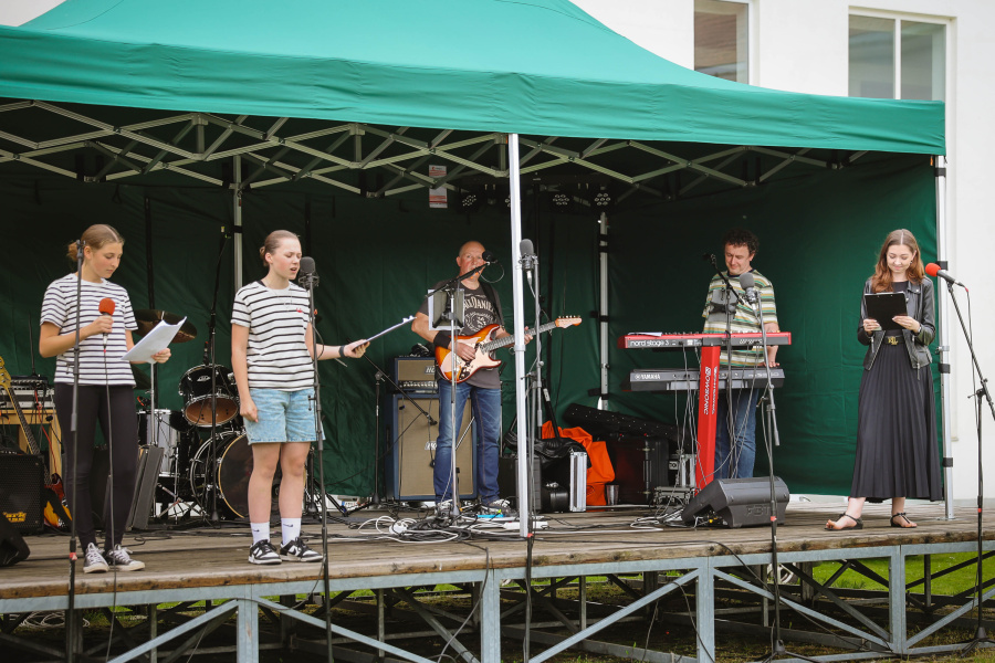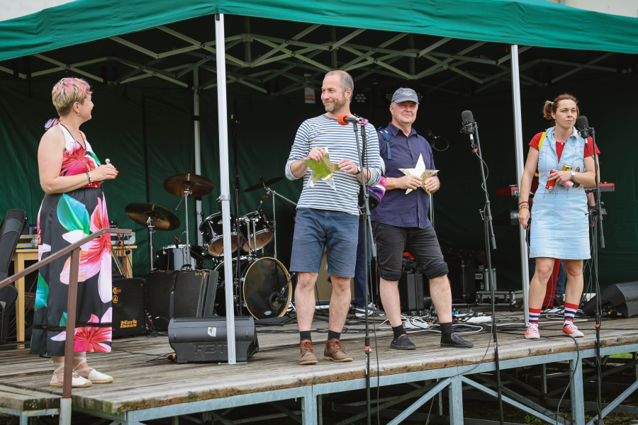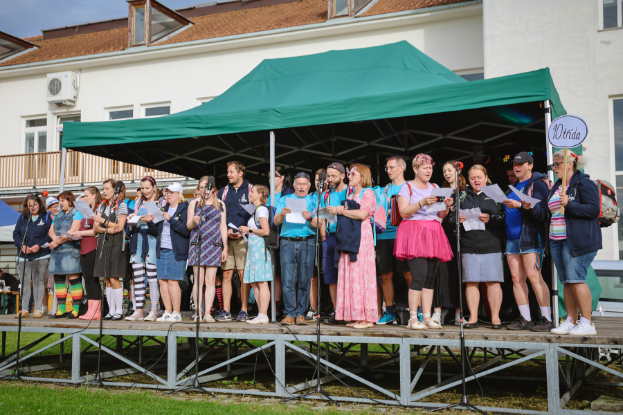 Všechno mohl zkazit déšť, který ne, a ne ustat. Týdny příprav, nácviků, vyrábění by sice nepřišly nazmar, ale plán zněl jasně: Slavit 25 let od postavení naší nové budovy školy budeme venku. Je to zvláštní, ale do poslední chvíle jsme to nevzdávali a vyplatilo se nám to. S kapelou POOL si tak mohla zazpívat ředitelka školy Andrea Olbertová, která pak společně se svým zástupcem Jiřím Sukaným popřála škole první hvězdou. A další hvězdy přicházely postupně. Bylo jich pětadvacet, každá mapovala událost nejen v naší zemi, ale i ve Velehradě. A přinesli je škole nejen třídní kolektivy společně s písní, ale mimo jiné i starostové Modré, Salaše a Velehradu, nebo bývalý ředitel školy Radomír Válek. Starostové jako „malí školáci“ všechny přítomné překvapili malou scénkou a vtipným vystoupením. Po koncertě, kterým skvěle provázela děvčata Julie a Ellen z osmé třídy společně s vyučující Aničkou Botkovou, si každý mohl vybrat z nabídky aktivit školního parlamentu nebo si nechat namalovat obličej. Komentovaná prohlídka školy přitáhla mnoho zájemců, žáci a rodiče si mohli ve školní tělocvičně vyzkoušet karaoke. Vše připravil žákovský parlament se svými vyučujícími. Přímo ve škole byla možnost vyfotit se ve školním fotokoutku, prohlédnout si hvězdné tablo tříd nebo poznávat fotografie vyučujících z doby, kdy jim bylo dvacet pět. A kdo zůstal venku, mohl zhlédnout hudební pohádku, kterou si připravili třeťáci s paní učitelkou. Občerstvit se každý mohl v našem bufetu, kde také probíhala ochutnávka nakládaných hermelínů připravená jednotlivými třídami, ale i učiteli. Překvapením byl déšť v podobě sladkostí, které z „nebe“ na svém rogalu spustil pan Kostrhun. Všichni jsme se společně bavili s kapelou POOL do večerních hodin a Rock na vsi – 25 hvězdných let jsme si tak užili naplno! Děkujeme, že jste byli s námi!