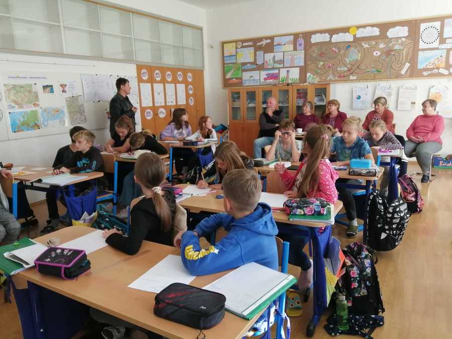 Jak vyučovat historii? Jak se s žáky zaměřit na život v minulosti? V páté třídě si vyučující spojili výuku vlastivědy a českého jazyka, žáci zase pozvali svoje prarodiče. A všichni tak společně prožili dvě vyučovací hodiny, které byly zajímavé a inspirativní. Páťáci kladli otázky, prarodiče odpovídali a vzpomínali na svoje školní léta. Vzájemně tak mohli srovnávat život dětí před mnoha lety s životem dnešním. Fotografie z dob minulých přispěly k nezapomenutelné výuce. Žáci také svoje příbuzné provedli školou a věříme, že toto společné setkání nebylo poslední. Svým podpisem ve sborovně prarodiče zanechali svoji nezapomenutelnou stopu v naší škole.