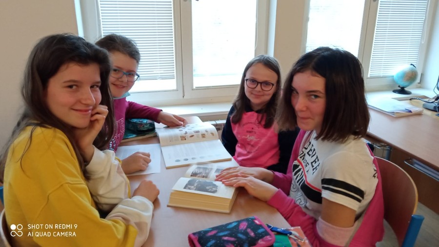 V hodině se rozdělili na čtyři skupinky, paní učitelka rozdala knihy, s jejichž pomocí luštili křížovky. Tímto způsobem se seznamovali s knihami věnovanými tomuto období dějin lidstva a učili se vyhledávat potřebné informace.