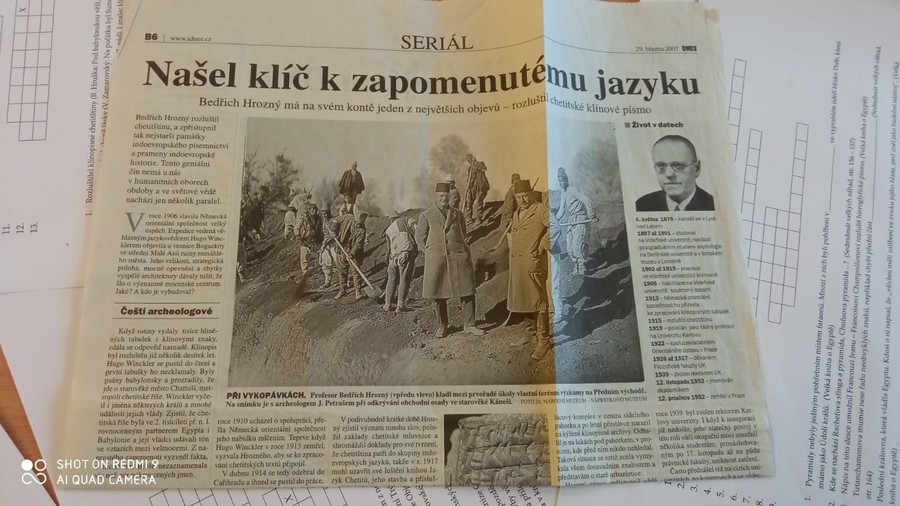 Poslední hodinu jim do výuky přinesla paní učitelka Jana Stránská několik knih a novinových výstřižků. Dozvěděli se pár zajímavostí, například že na Kypru již před 4000 lety existovala továrna na výrobu parfémů a také že Čech Bedřich Hrozný rozluštil chetitské klínové písmo.