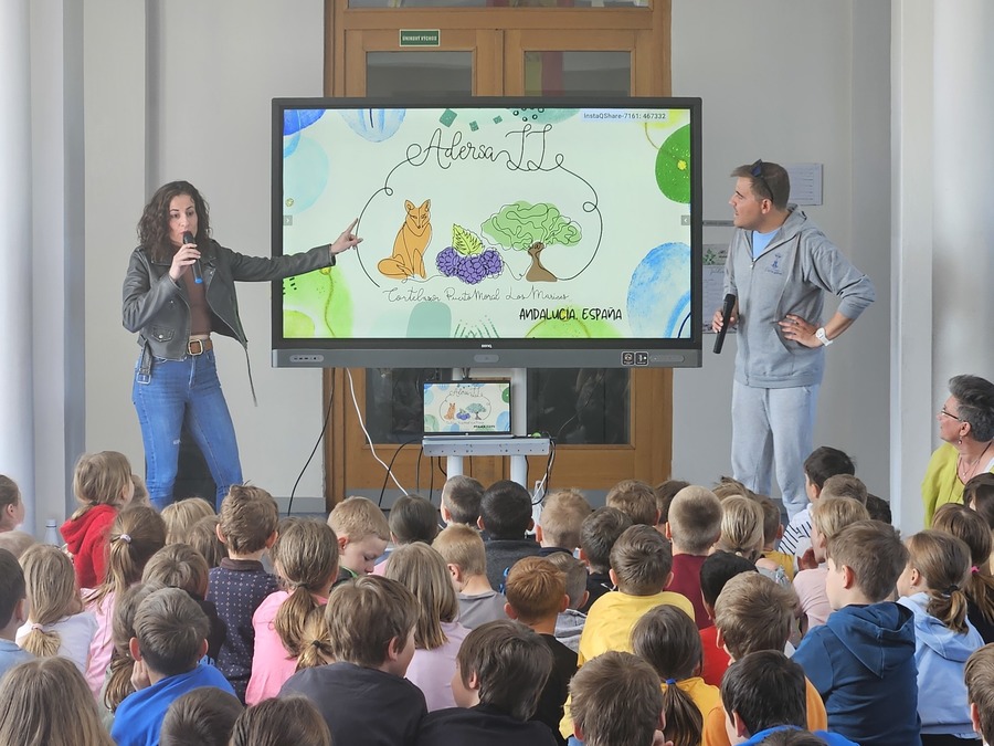 Tento týden naše škola hostí kolegy učitele z oblasti Sevilly ve Španělsku. Lupe, Tony, Filiberto a Karolína tak v pondělí společně s námi zahájili den příjemným férovým piknikem. V tento den jsme podpořili myšlenku Fair Tradu. Akce se v naší škole konala poprvé a měla velký úspěch. Počasí nám přálo, ochutnávali jsme domácí, lokální, férové dobroty, ochutnali jsme i kakaový bob. Povídali jsme si, hráli hry a také jsme tancovali. Učili jsme se, ale trochu jinak a seznamovali se s našimi zahraničními kolegy a jejich jazykem. Tento den zdaleka nekončil. Čtvrťáci vyrazili společně s hosty do skanzenu Modrá, kde pro ně byla připravena prohlídka Klenotnice s výukou o Slovanech. Děkujeme Skanzenu Modrá za výukové materiály a možnost učit se na místě, kde názorně můžeme sledovat život našich předků. Pestrý program byl pro kolegy ze Španělska připraven i v dalších dnech. Druháci zaujali výukou venku, devítka používala naše čidla, naši vyučující při odpoledním setkání srovnávali výuku v obou zemích. Ve středu se do našeho týmu vyučujících přidala paní Pavlína Pelikánová, která uspořádala workshop pro šestou třídu a zahraniční hosty. Společně si vyrobili mast z bylin, které před samotnou výrobou nasbírali. Týden ještě nekončí, naši kolegové pokračují ve stínování výuky i v dalších třídách. Již nyní víme, že je naše škola nadchla. Cítí se v ní velmi dobře a oceňují to, jak společně všichni spolupracujeme a jak naši žáci komunikují s nimi. To je pro nás dobrá zpráva!!!!