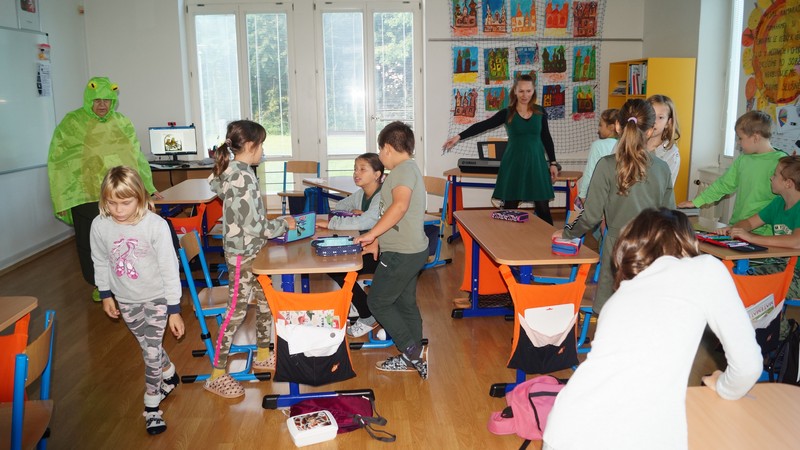 Navíc, aby to bylo ještě zajímavější, vyučující pracovali s jinými třídami, než je běžné. A tak si děti užily spoustu různých hereckých výkonů, her, soutěží, výuky, tvoření i spolupráce. Na závěr jsme se všichni sešli a podělili se o zážitky, zazpívali písničky a zasoutěžili v žabích závodech.