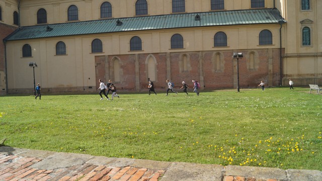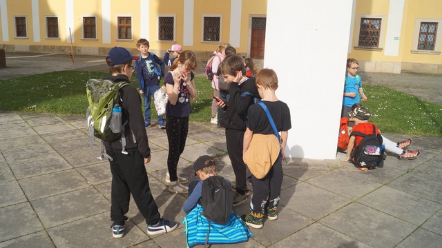 V předvelikonočním týdnu jsme pro žáky 1. stupně připravili dobrodružnou únikovou Velikonoční hru, která je zavedla na 10 stanovišť rozesetých po Velehradu. Hra probíhala v aplikaci Actionbound, díky které se děti mohly pustit do pátrání po ztracených svitcích. Děti jsme rozdělili do smíšených skupin po 4–5 napříč ročníky, takže měly příležitost navzájem si pomáhat, komunikovat a spolupracovat. Každá skupinka se vydala na trasu plnou kvízů, šifer, logických i úkolů na čtenářskou gramotnost a kritické myšlení, které je příjemně unavily, ale také naplnily radostí z objevování.