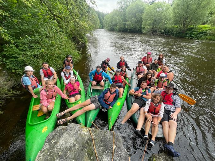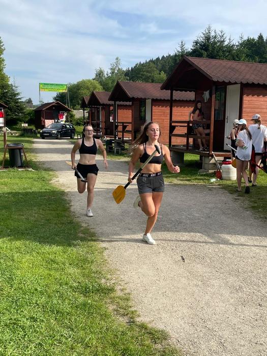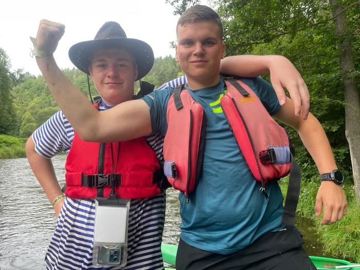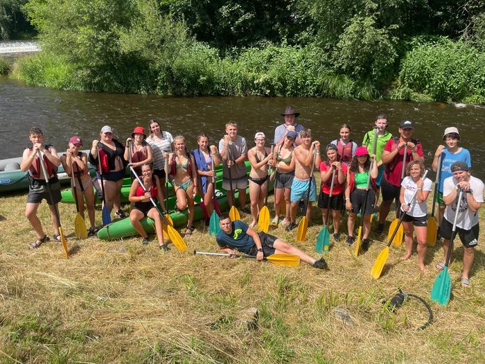 Všichni jsme se shodli na tom, že by měl být akční, a tak jsme se rozhodli pro vodák. Vyrazili jsme na Vltavu. Velká většina z nás neměla s jízdou na lodi a jejím kormidlováním vůbec žádné zkušenosti, věděli jsme tedy, že to bude dobrodružné. Vyráželi jsme v pondělí brzy ráno, abychom do cíle naší cesty - Českého Krumlova - dorazili co nejdříve a měli čas na jeho prohlídku. Toto krásné historické město se pro příští dny stalo naší "mekkou". Hned v úterý přišel křest ohněm, tedy pardon....vodou. I ti, kteří na lodi nikdy neseděli, museli překonat hned několik náročných jezů na trase z Vyššího Brodu do kempu Viking. kde jsme byli ubytováni. Přes drobné počáteční obtíže jsme nakonec vše ustáli. Ve středu jsme absolvovali asi dvanáctikilometrový úsek z kempu Viking až do Českého Krumlova a zvládli i nástrahy, které nám připravila.....vrba. Čtvrteční den patřil trase vedoucí z Českého Krumlova do Zlaté Koruny. Zpívali jsme, koupali se (někteří zcela nedobrovolně), užívali si pohodu, krásné počasí a přírodu. Byli i tací, kteří si závěrečný jez sjeli několikrát....prostě jen tak.