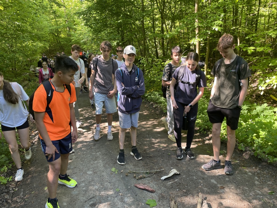 První zastávkou bylo odpočívadlo u rozcestníku Dubový díl, kde měly jednotlivé třídy připravený úkol – poznávat rostliny a stromy podle listů. Po krátké pauze výprava pokračovala směrem k penzionu Pod Břesteckou skalou. Cestou žáci plnili další úkol: tentokrát rozpoznávali stromy podle jejich kůry.